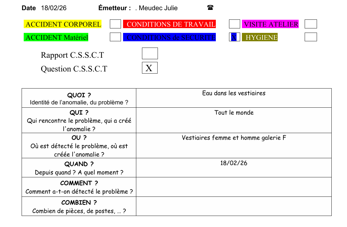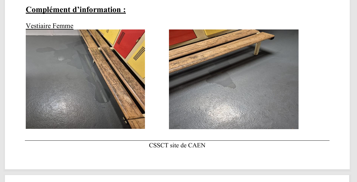 Alerte CSSCT pour l'eau dans les vestiaires